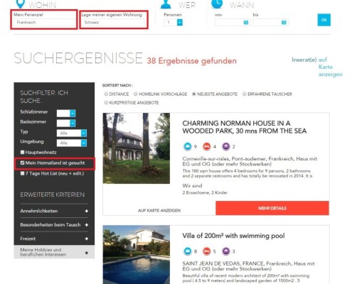 Es gibt keine „materielle“ Kritieren um sein Daheim tauschen zu können. Sie können Ihr Haus tauschen, unabhängig davon, wo es steht und wie es aussieht: ein Studio im Zentrum von Zürich oder ein Schloss in der Umgebung von Neuenburg, ein Planwagen in der appenzellischen Pampa oder ein Boot auf dem Genfersee. Wichtig ist, dass Ihr Daheim liebevoll eingerichtet und korrekt unterhalten ist.